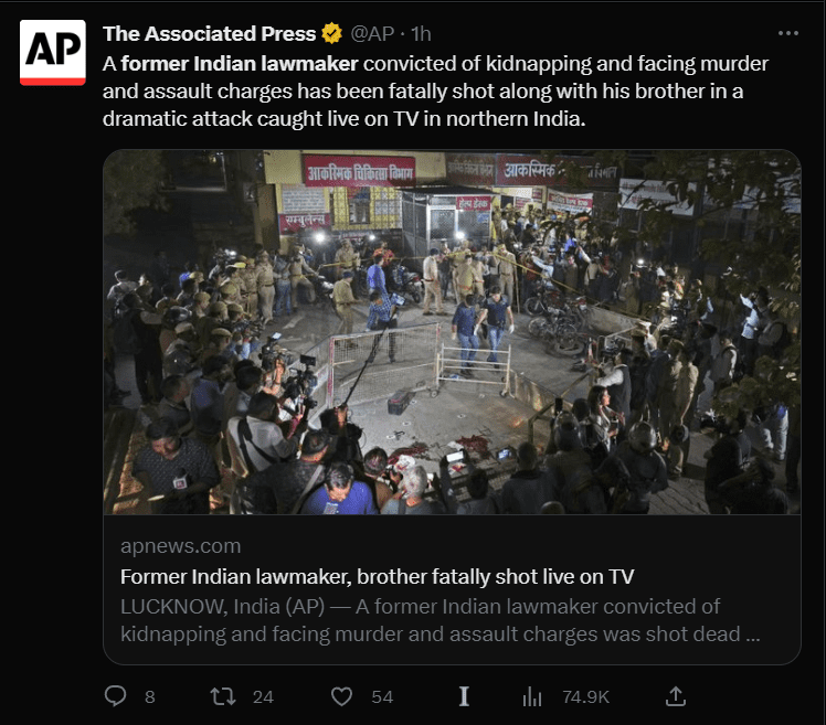 Former Indian politician Atiq Ahmed and brother shot dead live on TV https://t.co/OQn1fZs3JP