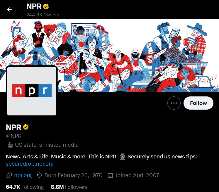 Screengrab of the Twitter Profile of NPR