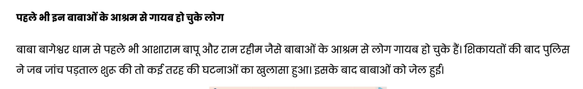 Without an iota of proof, Newstrack adds that several other ashrams – like that of Asaram Bapu and Ram Rahim (convicted by courts) have seen people going missing. They say that when the police investigated, several terrible crimes came to light. They essentially insinuate that there is criminality is also an element in the 21 people going missing in Bageshwar Dham.