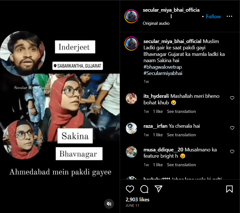 In a case allegedly from Gujarat, Islamists are seen harassing a Muslim woman for accompanying a Hindu man on a bike. They verbally abuse her with the choicest of expletives for not finding a Muslim partner and engaging in inter-faith relationships.