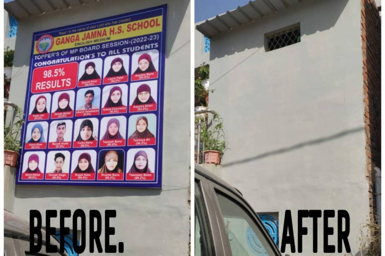 Ganga Jamuna Higher Secondary School is a private, English-medium established in ward number 4 of the Futera neighbourhood in the Damoh region. The names of outstanding students from the school, both boys and girls, were listed on the posters that were doing the rounds on social media. Three of the eighteen were boys, while the remainder were girls. Four of the fifteen girls were from the Jain and Hindu communities and all of them were sporting hijabs, or head scarves, on their heads.