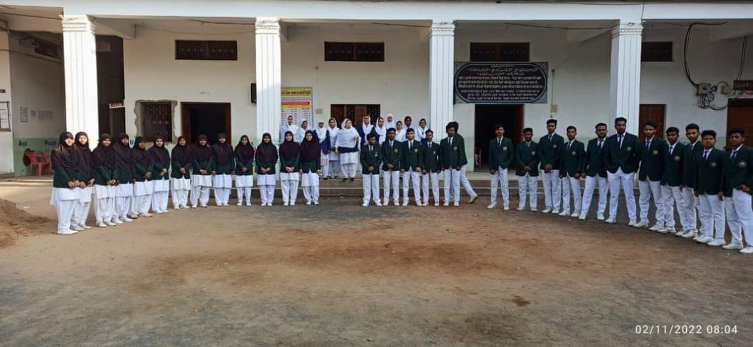 A girl can be heard welcoming the function’s chief guest, MP Tiwari, as well as the school’s director, Haji Mohammad Idri, the vice president of the Ganga Jamna Welfare Society, Haji Abdul Razzaq, and the cashier of the Ganga Jamna Society, Haji Mohammad Mushtaq.