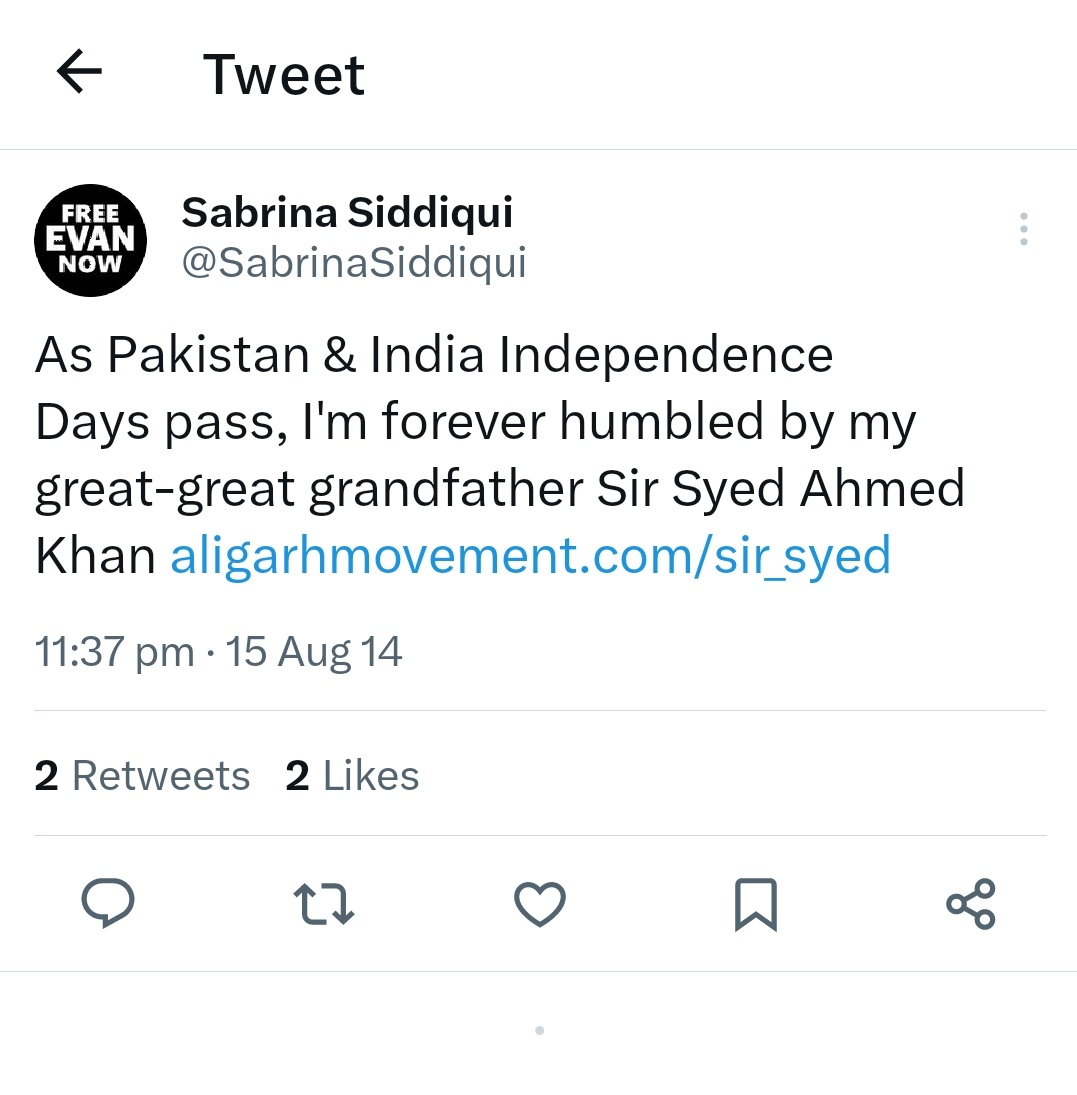 He also included screenshots of the said Opindia article, besides the old tweets of Sabrina Siddiqui rooting for India’s victory during a cricket match. Zubair had also managed to find a tweet by the same ‘journalist’, wherein she is seen claiming to be the the great-great grand daughter of Sir Syed Ahmed Khan.