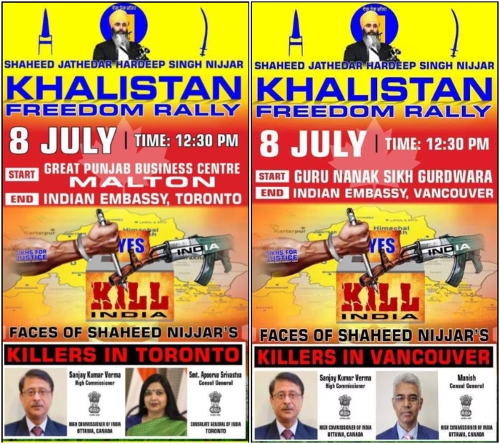 While the poster for a protest rally in Toronto on July 8 named Indian High Commissioner Saurav Kumar Sharma and Counsellor Apurva Srivastava with photos and posters of a simultaneous rally in Vancouver named the High Commissioner and Counsel General of Vancouver Manish.