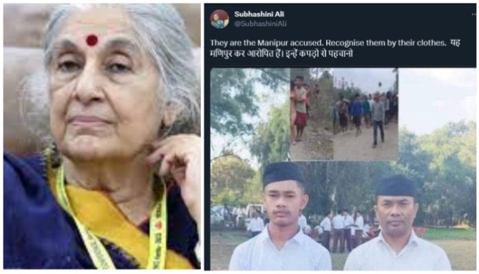 On the 23rd of July, Former MP and CPI(M) leader Subhashini Ali uploaded pictures of the two men in RSS dress along with the screengrab of the viral video of the Manipur incident. In her tweet, she writes, “They are the Manipur accused. Recognise them by their clothes.”