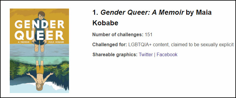 OpIndia examined a few titles mentioned in the books to understand the content. The first book or graphic novel on the list is “Gender Queer: A Memoir by Maia Kobabe“. It was challenged 151 times for having LGBTQIA+ content.