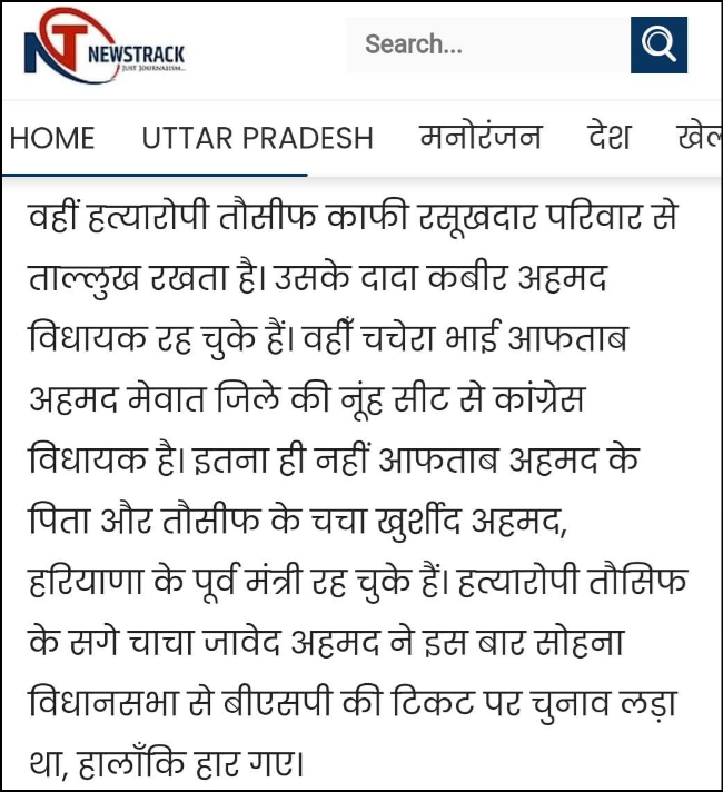 Another report published by Newstrack also identified Javed Ahmed as Tauseef’s uncle. Since he was associated with the Bahujan Samaj Party then (in 2020), these reports mention him as a BSP leader.