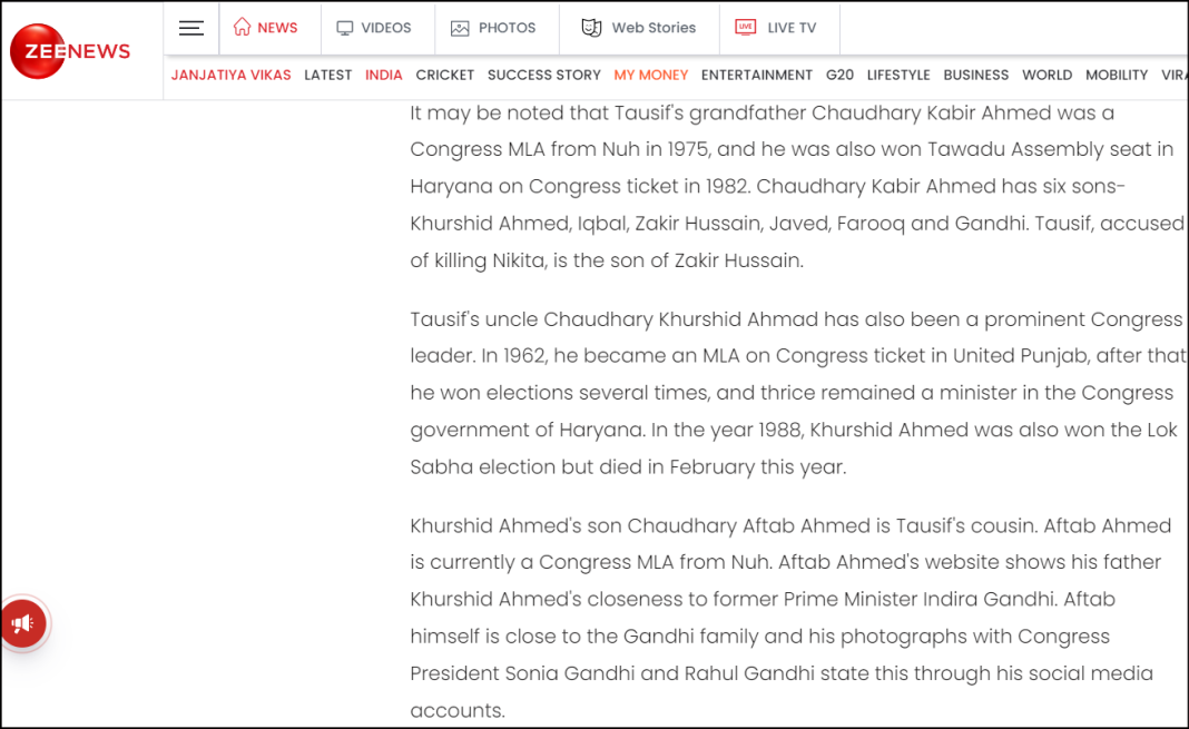 It may be noted here that while covering the Nikita Tomar murder case, OpIndia had detailed how Tauseef, the prime accused in the case, reportedly belongs to a family of influential Congress politicians.