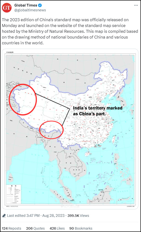 On 28th August (local time), China released the 2023 edition of its territorial map as per its imagination, claiming Indian territories such as Arunachal Pradesh and parts of Ladakh (Aksai Chin region) as its own. Apart from Indian territories, China also included Taiwan and the contentious 9-dash line in the South China Sea.
