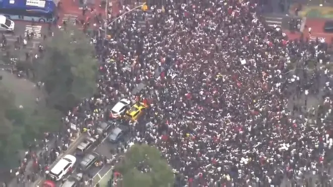 When the police tried to disperse them to nearby streets, one horde of his fans took a knee and started a “Black Lives Matter” chant at 19th Street. While those who were diverted to other streets stormed the buildings nearby including a CVS store. They looted candy, snacks, and water bottles and distributed them among themselves, and littered the space. Some others snatched the food from those who were dining outside the restaurants.
