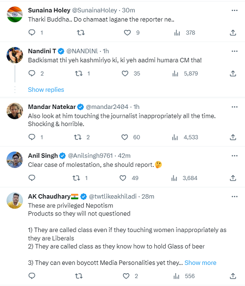 Netizens also called the incident disgusting and indicated that this was a case of molestation. Abdullah while talking to the journalist could continuously be seen touching her and making her feel uncomfortable.