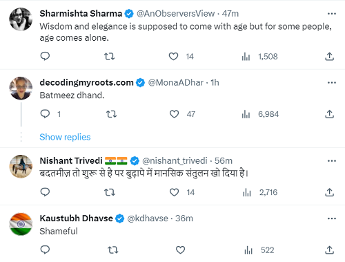 “Making personal and inappropriate remarks during an interview is not just disrespectful but also unbecoming of a seasoned politician. Professionalism and respect should always be upheld in any interaction. Visibly uncomfortable situation for a budding journalist,” Yasmeen wrote on Twitter (X).