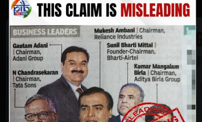 The official X handle of the PIB Fact Check shared a screenshot showing pictures of Mukesh Ambani- the chairman and managing director of Reliance Industries; Gautam Adani- the founder and chairman of the multinational conglomerate Adani Group; N Chandrasekaran- chairman of Tata Sons, Sunil Bharti Mittal- founder and chairman of Bharti Airtel and Kumar Mangalam Birla- the chairman of Aditya Birla Group.