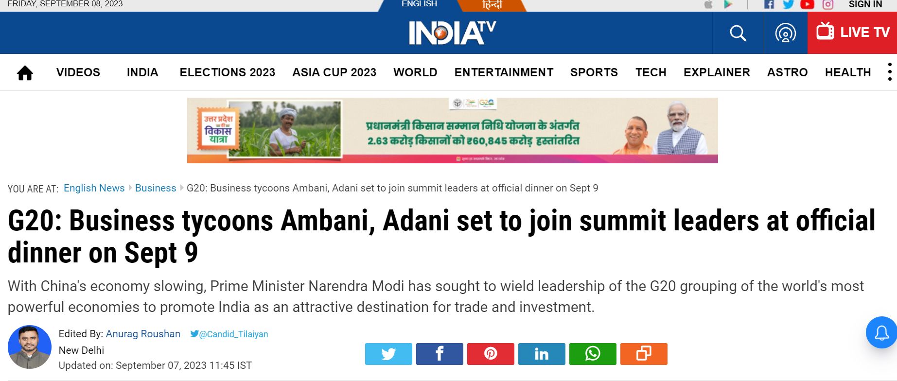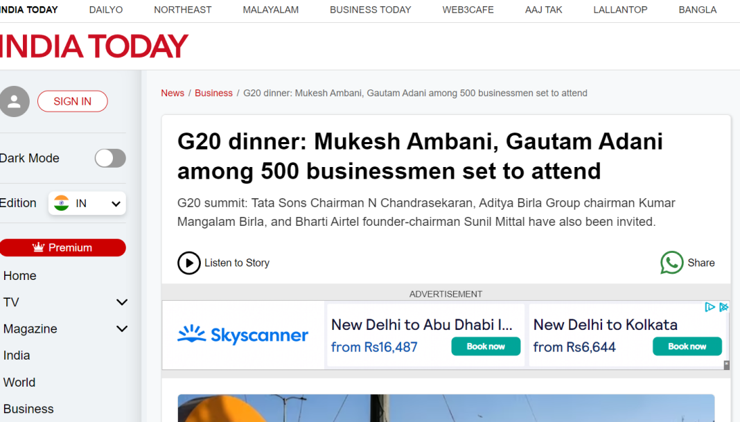 Various Indian mainstream media houses like India Today, India TV, etc. picked up the report published by Reuters. These reports explicitly quoted Reuters and wrote that Tata Sons Chairman N Chandrasekaran, Aditya Birla Group chairman Kumar Mangalam Birla, and Bharti Airtel founder-chairman Sunil Mittal, as well as Reliance Industries’ Ambani and Adani Group Chairman Gautam Adani, have been invited for the G20 dinner to be held today (Saturday, September 8).