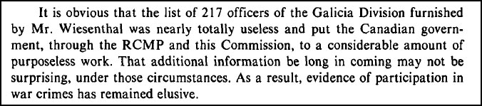 Citing the 1986 Commission report on War Crimes by the Canadian government, Giles argued that famous Nazi hunter Simon Wiesenthal himself was found to have made broad accusations against the unit in question, and the commission found them “nearly totally useless” and “put the Canadian government to a considerable amount of purposeless work.”