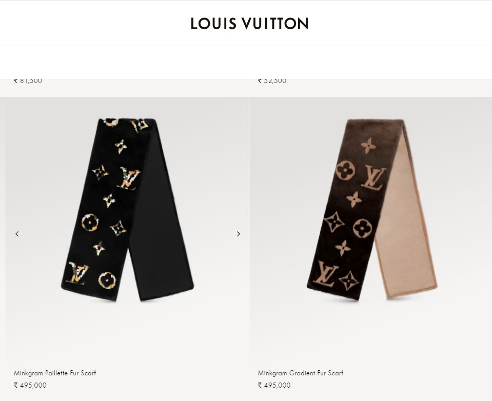 The third item mentioned in the list was scarves from Louis Vuitton. The scarves by Louis Vuitton can vary anywhere between Rs 50,000 to Rs 4,95,000 as per the company’s official website’s India store.
