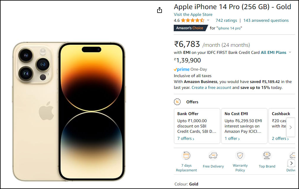 The phone is listed at a price of Rs 1,39,900 on Amazon.