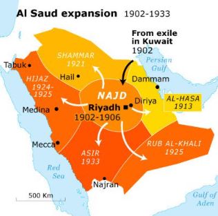 Together they crushed all rebels including Ottoman’s effort to intervene. They captured Mecca in 1924 and Medina in 1925 which were ruled by Hashimites who had been pulled away from Ottomans by the British, yet British ally Al Saud ended 700 years of rule of Hashmities as Sharif of the Holy cities of Islam (barring a few years in between).
