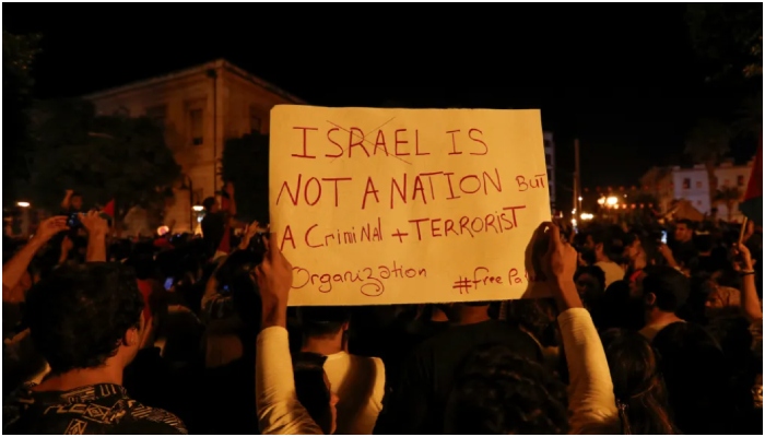 Several other protesters also raised placards that read, “Israel is not a nation but a criminal and a terrorist organization. #FreePalestine.” It is important to note that Hamas is a designated terrorist organization from Palestine, which first launched a brutal attack on Israel.