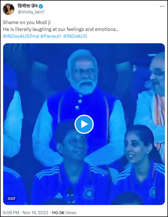 Interestingly, the video clip was shot after the completion of 32 overs. At that time, Australia was at 172 runs with a loss of three wickets. At that time, there was still hope for the Indian Cricket team to make a comeback. The fans were also laughing in the row below where PM Modi and HM Shah were seated. If Shrinate was to be believed, did she mean that even the fans laughed at India’s loss?