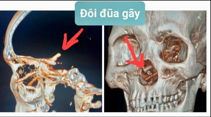 The unnamed patient (born 1988) is a resident of Bo Trach district, Quang Binh province. According to his family, about 5 months ago, when he was drinking, he had a fight with another person and he suffered injuries. It can be concluded that his opponent shoved the chopsticks through his nose when he was unconscious.