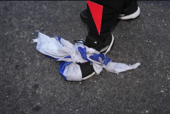 As per reports, the protestors defaced the exterior of the Union Square Holiday Market where they left stickers and flyers with “Zionism is terrorism”, “Free Palestine”, and “Murdered by Israel” written on them. One of the protestor stomped on Israel flag, as per the visuals of the protest.