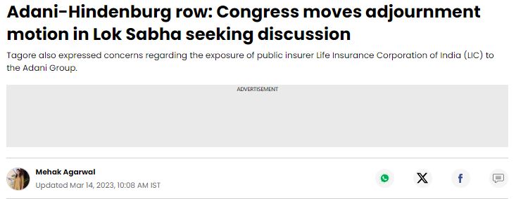 The Hindenburg Research, a short-selling firm, published a report, on 24th January 2023, accusing the Adani Group of fraud and stock price manipulation. The report came days ahead of the 2023 Budget Session of the Parliament which began on 31st January.