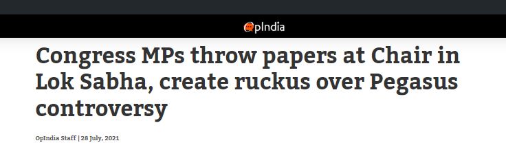 As the old adage goes, ‘while the truth begins to pull its socks, lie has already traveled around the world’. Despite being unsubstantiated and in most cases, the Joseph Gobbel-esque hitjob reports, it gives fodder to the opposition to buttress their cliched and baseless tropes – “Free Speech, Democracy, and Idea of India” getting “strangulated” and “the corrupt government is selling out the country to crony capitalist”, which can’t be further from the truth. With the opposition taking extreme measures and creating an unhinged ruckus, the Parliamentary proceedings and entire sessions get washed away in the pit of baseless foreign media reports.
