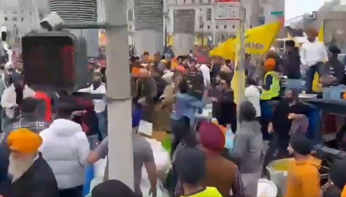 A dramatic video featuring a violent altercation between two rival Khalistani factions is making the rounds on social media. Several individuals could be observed hitting one another while the security officials attempted to contain the situation. Khalistani flags are also being displayed by those taking part in the unrest. The incident transpired on 28th January during the Khalistani referendum in California’s San Francisco which was arranged by terrorist Gurpatwant Singh Pannun and his outlawed pro-separatist organisation, Sikhs For Justice.