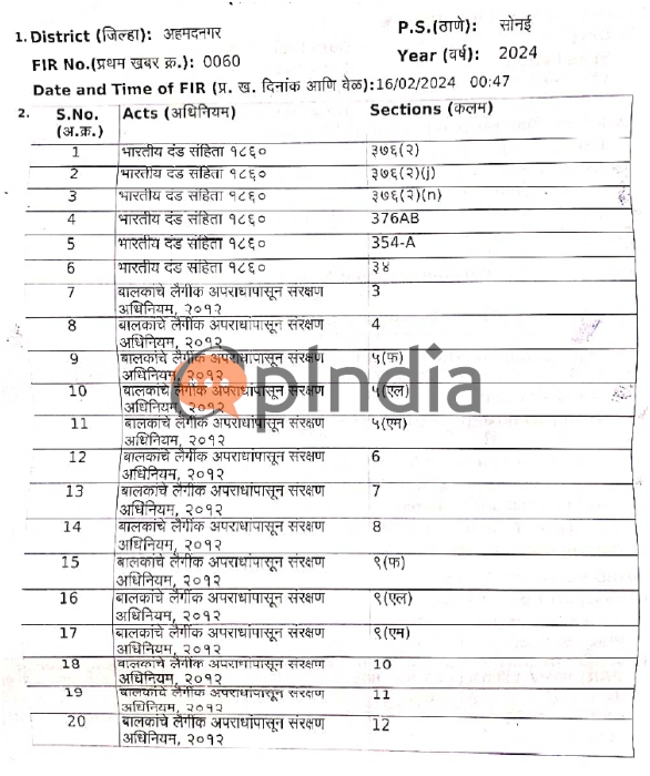 The incident is said to have happened in the Rajwada village of Ahmednagar’s Sonai region. The police have taken cognizance of the event and have booked the accused persons under the relevant sections of the Indian Penal Code, 1860, and the Protection of Children from Sexual Offences Act, 2012. Around 20 sections including rape charges have been imposed on the accused. A copy of the FIR has been obtained by OpIndia.