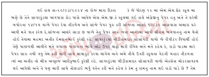 According to the FIR, the student went to SMGK High School in Savarkundla on 20th March to appear for the 12th board examination. He did very well in the test and chanted ‘Jai Shri Ram’ to voice his gratitude to God. However, Mohammad Atiq Qureshi who was also there for his 12th board exam didn’t like it. He grumbled, “Don’t shout, I didn’t perform well in the exam,” and started fighting with the Hindu boy.