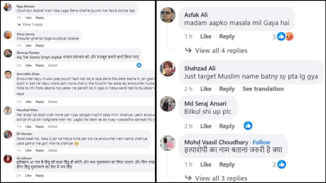 News channel Aaj Tak also published news in this regard. In the comment section of the news channel Aaj Tak, many Muslims started calling it false news. They insisted that the accused was killed in an encounter because he was a Muslim.