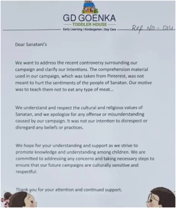 “We understand and respect the cultural and religious values of Sanatan and we apologize for any offense or misunderstanding caused by our campaign. It was not our intention to disrespect or disregard any beliefs or practices,” the apology letter read.