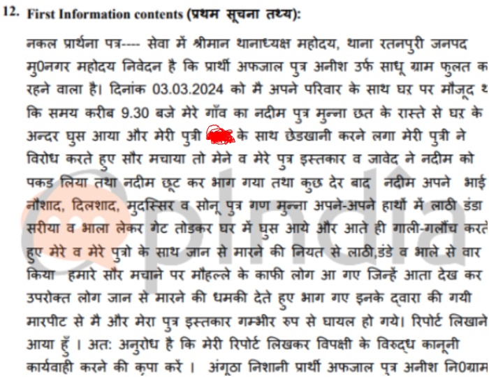 Following this, Nadeem was beaten. Later, Nadeem returned with his brothers to kill Afzal. He broke into Afzal’s house with his brothers Naushad, Dilshad, Mudassir, and Sonu, and attacked the family with sticks and iron rods.