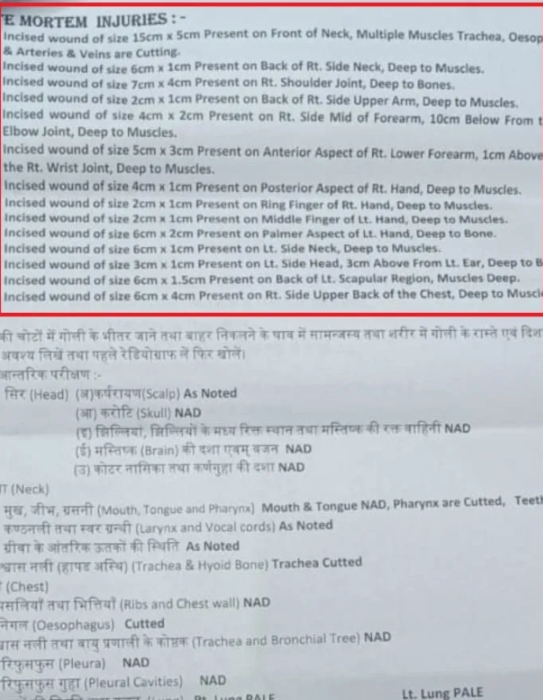 First mark: The biggest wound of 15cmx5cm on the neck from the front, due to which many organs related to the throat were cut off. The trachea also looked damaged. This particular attack was akin to that of a butcher butchering an animal.
