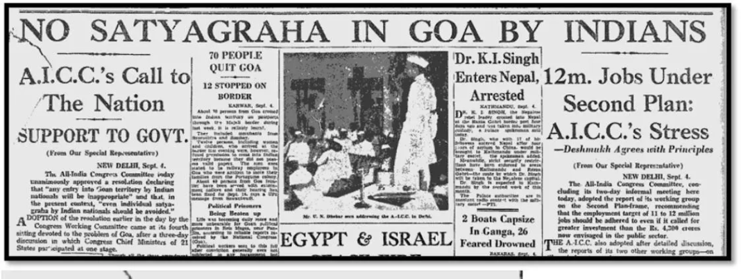 Nehru had even warned and shamed the freedom fighters and leaders that their efforts would get no support from the Indian government. Besides not letting the army perform its task to liberate fellow Indians from foreign rule, Nehru also opposed other revolutionaries from India who wanted to join the struggle to liberate Goa. A newspaper clipping from the late 1960s had reported the All India Congress Committee approving a resolution to call back Satyagrahis (peaceful protestors) to Indian soil. It read, “Any entry into Goan soil by Indian Nationals will be inappropriate, and even individual Satyagrahas should be avoided”.