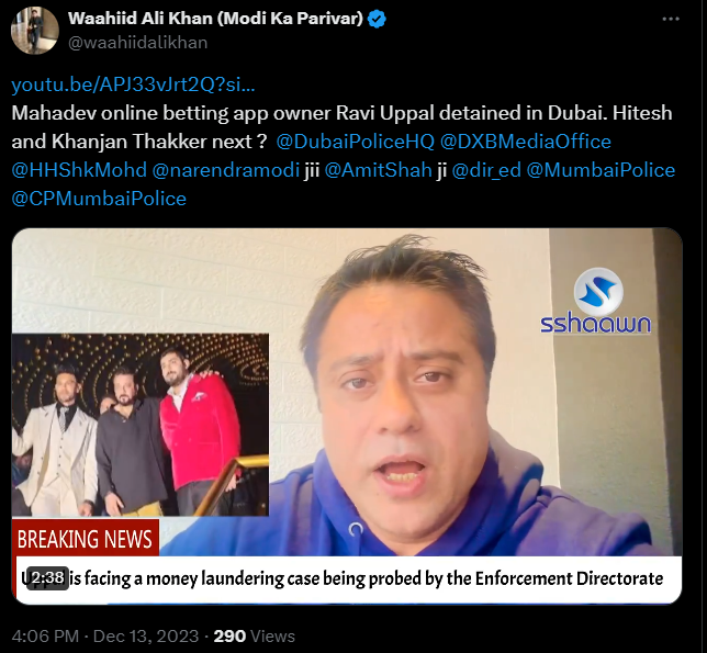 Mahadev online betting app owner Ravi Uppal detained in Dubai. Hitesh and Khanjan Thakker next ? @DubaiPoliceHQ @DXBMediaOffice @HHShkMohd @narendramodi jii @AmitShah ji @dir_ed @MumbaiPolice @CPMumbaiPolice pic.twitter.com/w3JYyn2tDX