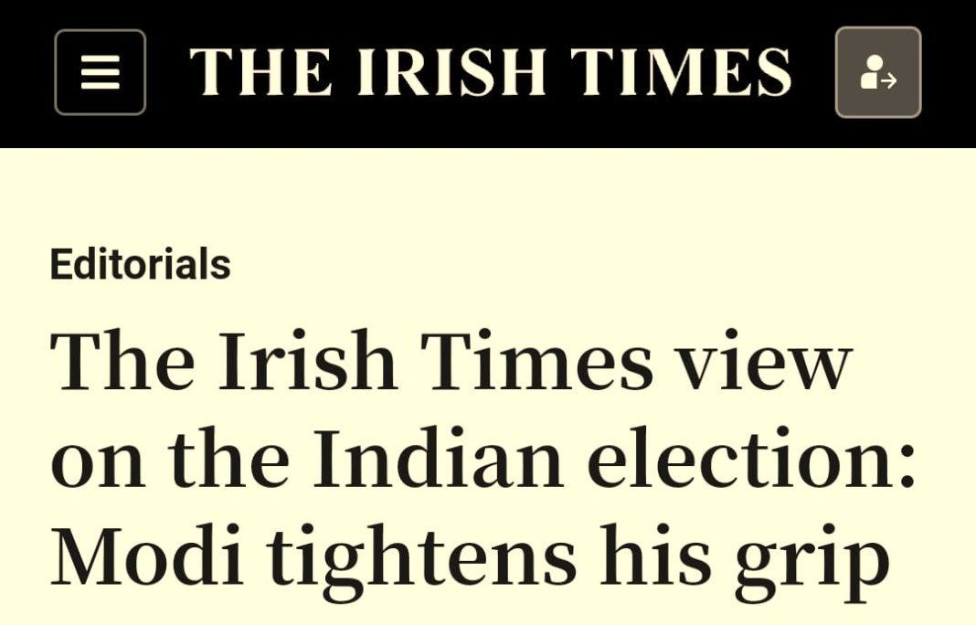 The Irish newspaper published an editorial titled,’ The Irish Times view on the Indian election: Modi tightens his grip’ on Thursday (11th April) wherein it alleged that India has somehow fallen prey to ‘intolerant Hindu-first majoritarianism.’