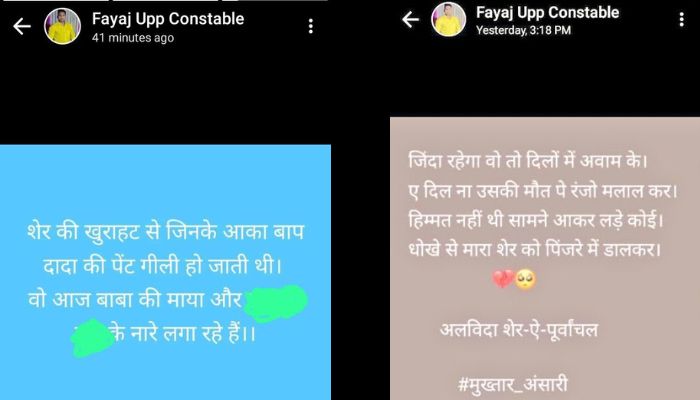 On Sunday (31st March), the Uttar Pradesh police initiated disciplinary action against its constable Fayaz Khan for hailing deceased Mukhtar Ansari on social media.