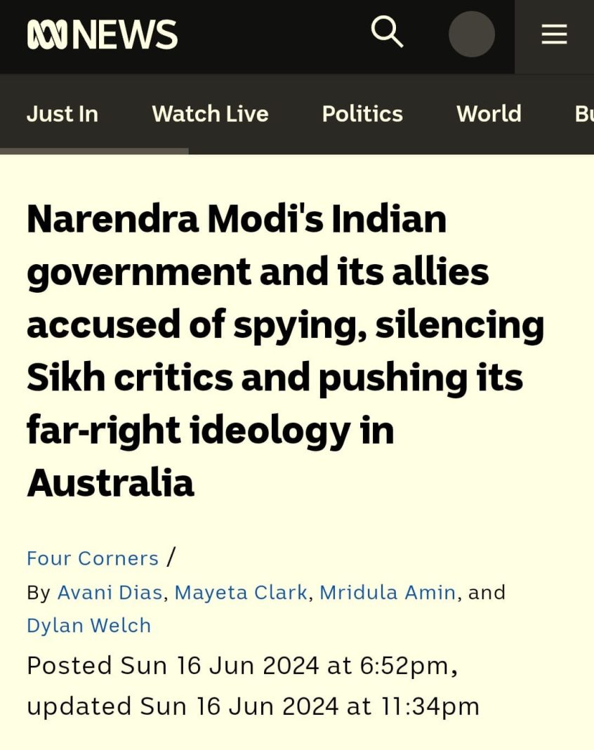 On Sunday (16th June), the Australian Broadcasting Corporation (ABC) News carried out yet another hitjob on India and accused the Modi government of planning to assassinate Khalistanis residing in Australia.