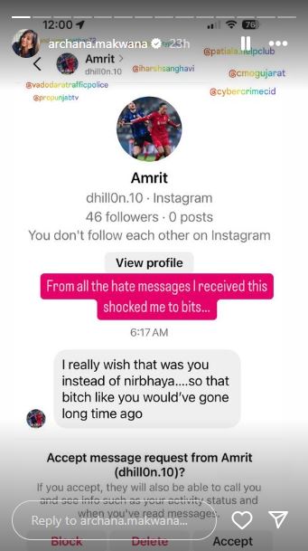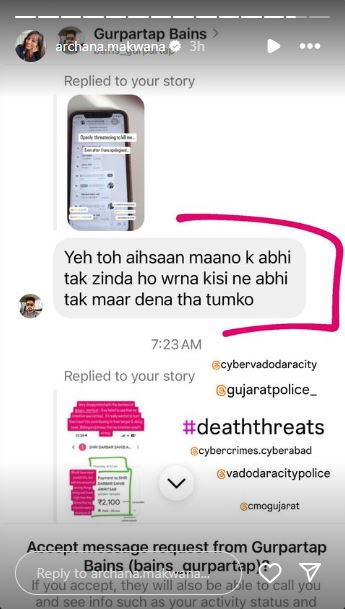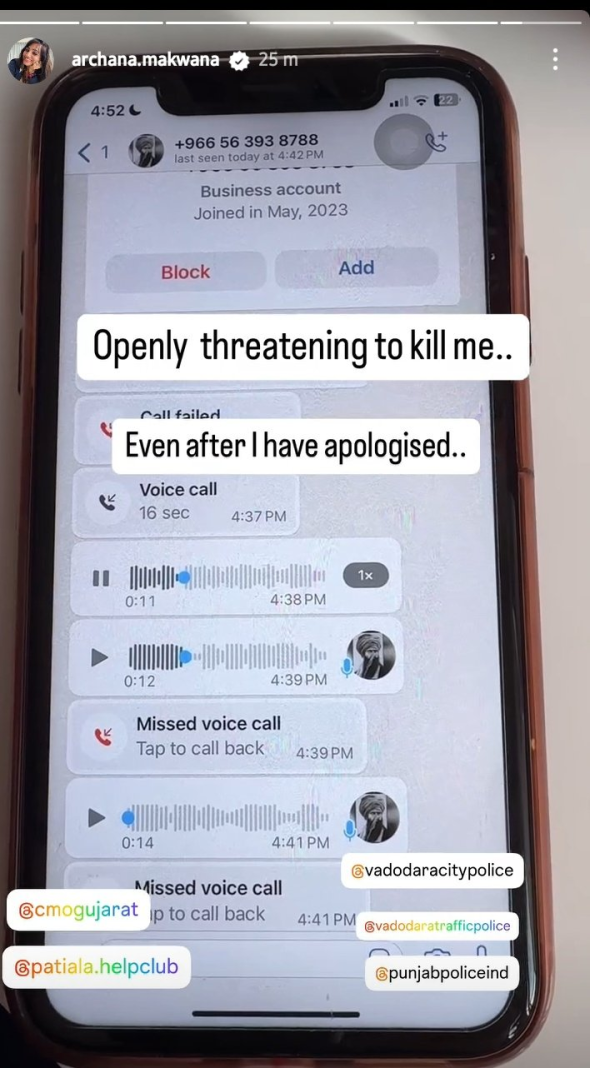 Archana Makwana also received several audio messages with death threats, as shared by her in a earlier Instagram status.