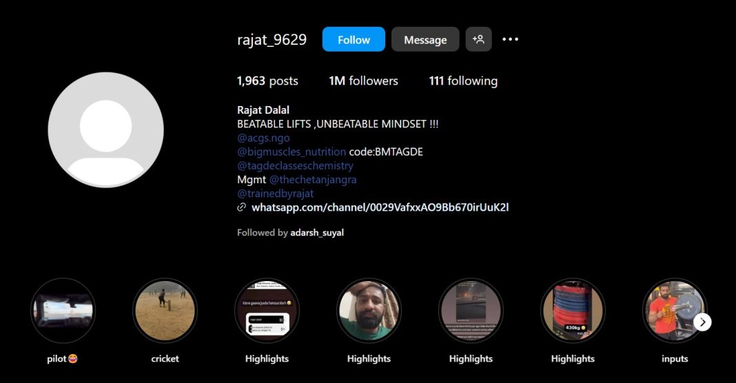 With 1 million followers on Instagram, bodybuilder, Instagram fitness influencer, and power-lifter Rajat Dalal, known for his extreme fitness videos, has a huge fan base.