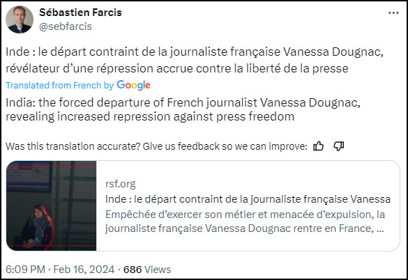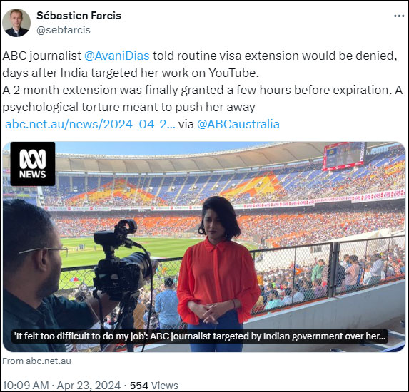 He had extended support for both Avani Das and Vanessa Dougnac when they were kicked out of India for anti-India reporting.