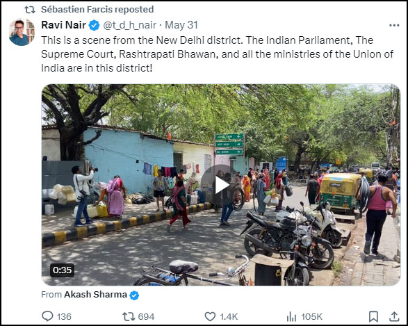 He reposted a post on X by Ravi Nair where the water crisis was highlighted. The post by Nair projected as if the Union Government was responsible for the water crisis. In reality, supplying water to the people of Delhi is the responsibility of the Delhi government under the Aam Aadmi Party, which skipped the mention in the post.