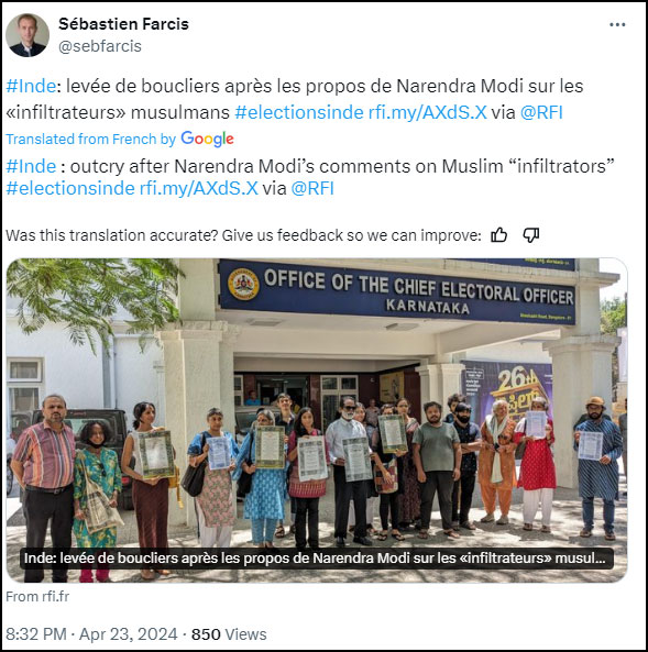 In April, he shared a report from his publication that there was an outcry after Prime Minister Narendra Modi called Muslims “infiltrators”. The report conveniently ignored the fact that PM Modi was not talking about Muslims from India but Muslims who illegally enter India.
