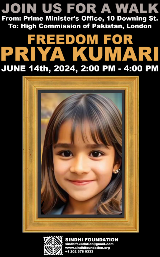 As per the reports, the foundation has planned to organize a long march on the streets of London to commemorate the abduction of Priya Kumari on June 14th. “The long march has been organized in remembrance of the enforced disappearance of a young girl, Priya Kumari who was forcibly abducted in Pakistan three years ago,” the statement read.