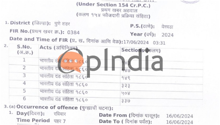 The FIR copy of the said incident has been obtained by OpIndia. The sections imposed by the Pune Police in the given case are sections 143 (unlawful assembly), 147 (punishment for rioting), 149, 323 (voluntarily causing hurt), 504 (intentional insult or provocation), and 337 of the Indian Penal Code, 1860.