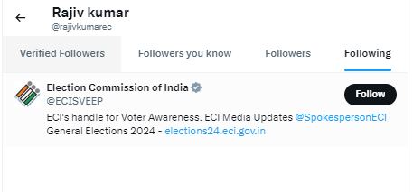 Chief Election Commissioner of India is following only 4 accounts on Twitter: Election Commission, Rahul Gandhi, AIR News and Mohammad Zubair.