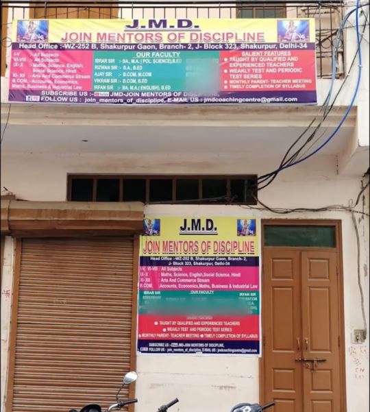 Additionally, the banner of the JMD coaching center had pictures of Maa Saraswati in the corners. It also had the names and mobile numbers of five teachers namely Ibrar, Rizwan, Ajay, Vikram, and Irfan.