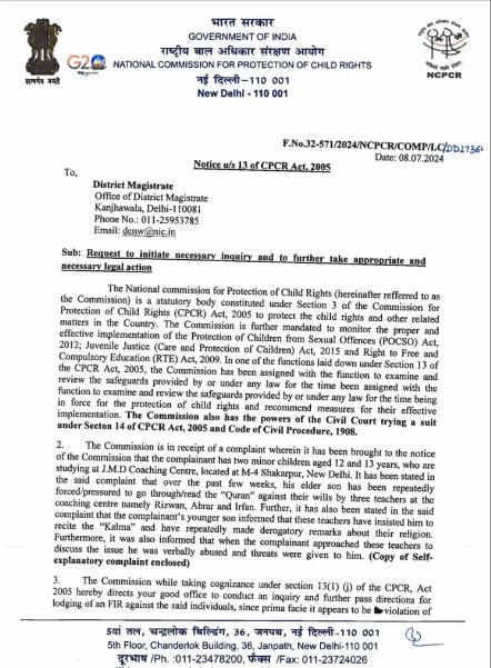 Additionally, on 8th July, the NCPCR also issued a notice to the District Magistrate (number: DD27362) and demanded an investigation report into the matter within three days.